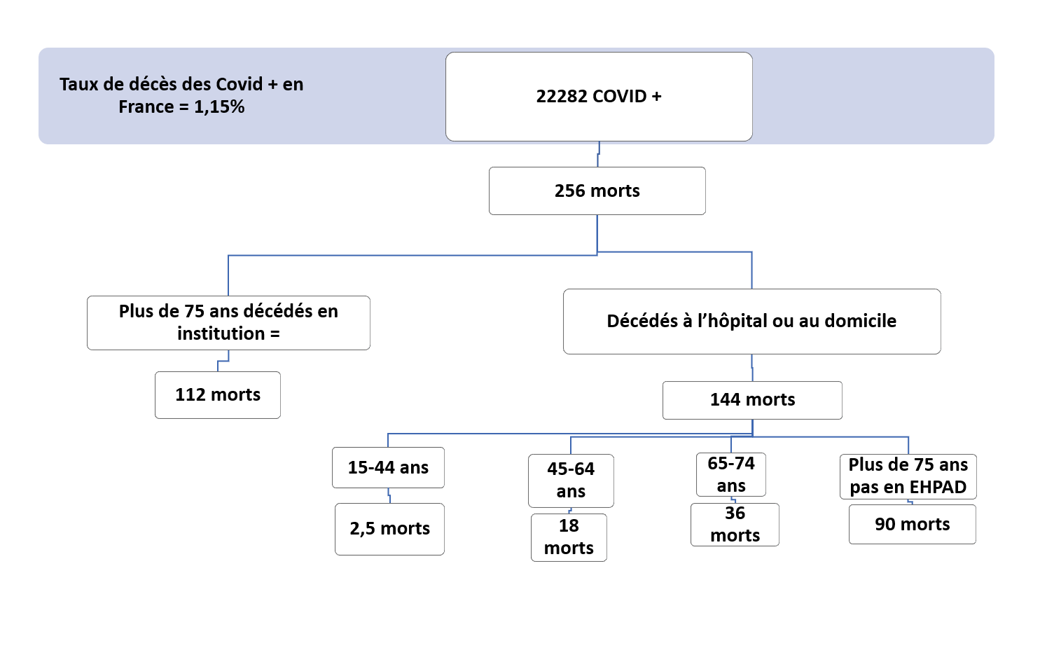 - 44% sont des patients en EHPAD, soit 112 personnes âgées qui décéderont en EHPAD