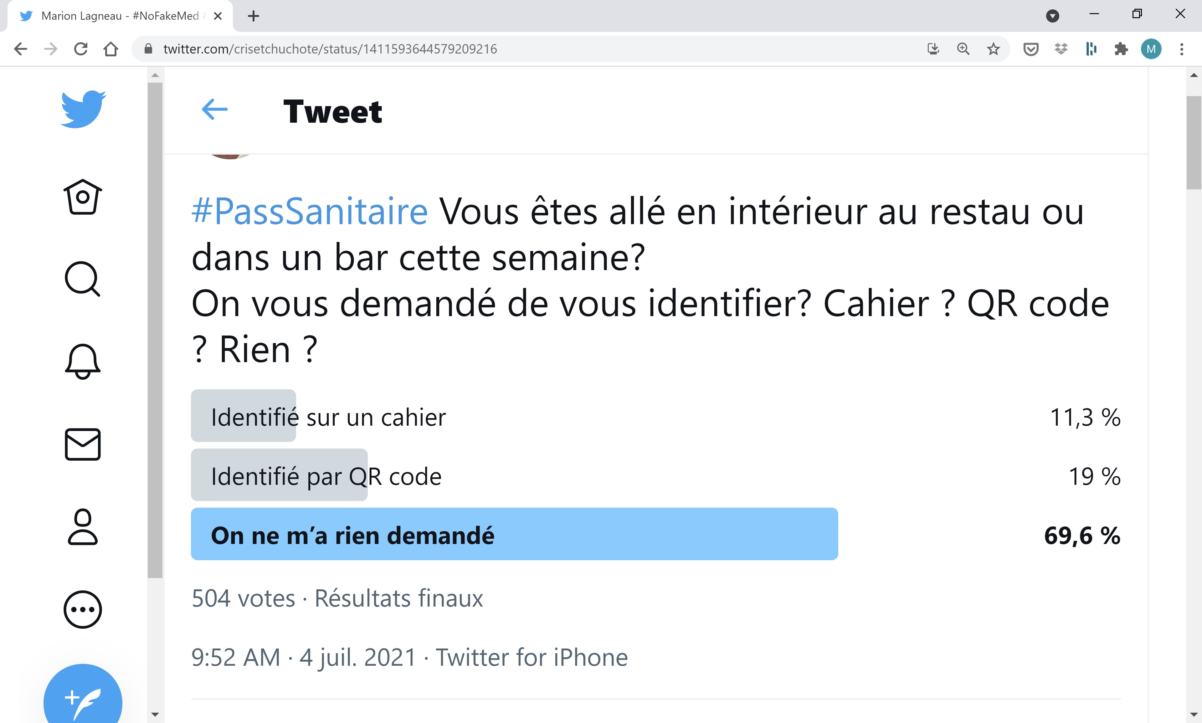 Enfin, dans cette même pépinière du non-suivi des consignes, on peut maintenant (hélas, trois fois hélas), inclure les trop nombreux bars et restau qui ne jouent pas le jeu de la prévention des clusters, comme en témoigne cette tristissime enquête que j’ai réalisée sur Twitter :